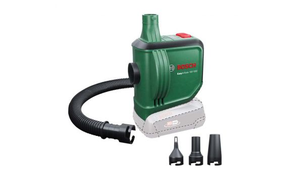 - Η αντλία αέρα μπαταρίας EasyInflate 18V-500 της Bosch με μέγιστη ροή αέρα 530 λίτρα/λεπτό φέρνει ένα νέο επίπεδο ταχύτητας και άνεσης στο φούσκωμα και ξεφούσκωμα παιχνιδιών πισίνας, φουσκωτών σκαφών, στρωμάτων αέρα και άλλων αντικειμένων μεγάλου όγκου.