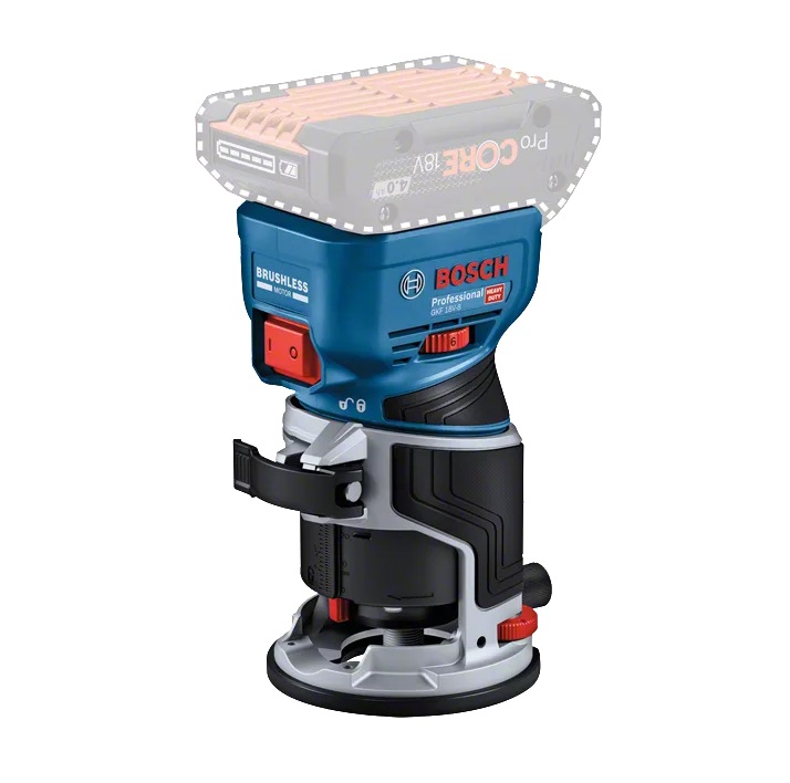 - Επιπλέον, το GKF 18V-8 είναι το μοναδικό κουρευτικό περιθωρίων 18 V στον κόσμο με προσαρμογείς απορροφητήρα για φρεζάρισμα επιφανειών και ακμών, παρέχοντας εξαιρετικά αποτελεσματική συλλογή της σκόνης σε κάθε περίπτωση.