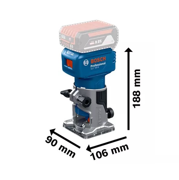 - Η κάθετη φρέζα μπαταρίας GLF 18V-8 Professional είναι το βασικό εργαλείο για κούρεμα ακμών, αυλάκωση, κούρεμα προτύπων και δημιουργία προφίλ.