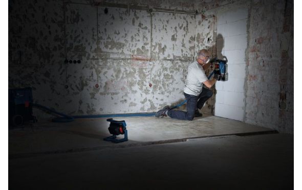 Το PRO GLI18V-5000 προσφέρει εξαιρετικό φωτισμό στην περιοχή εργασίας. Με 3 επίπεδα φωτεινότητας, τα 80 LED μπορεί να ρυθμιστούν έως και 5000 λούμεν. Ο συμπαγής σχεδιασμός του προβολέα με τον ισχυρό μαγνήτη, το σπείρωμα τρίποδα 5/8" και τα μεταλλικά άγκιστρα σας προσφέρουν μέγιστη ευελιξία. Η κεφαλή φωτισμού με δυνατότητα κλίσης 135° σσς βοηθά να ρίχνετε το φως σε κάθε γωνία, ενώ ο χειρισμός με ένα κουμπί το καθιστά ευκολόχρηστο. Είναι υδατοστεγανός και κονιοστεγανός χάρη σε ένα στιβαρό κάλυμμα μπαταρίας με βαθμό προστασίας IP 54. Διαθέτει διεπαφή χρήστη με ένδειξη φωτεινότητας και ένδειξη του επιπέδου φόρτισης.Το PRO GLI18V-5000 Professional φωτίζει μεσαίου έως μεγάλου μεγέθους χώρους εργασίας. Είναι συμβατό με το Bosch Professional 18V System και με τη συμμαχία μπαταριών...