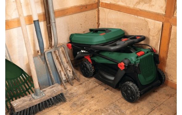 - Εάν προτιμάτε, το βύσμα εδαφοκάλυψης σας επιτρέπει να λιπαίνετε φυσικά το γκαζόν σας με το κομμένο γρασίδι, ενώ η αναδιπλούμενη λαβή και ο πτυσσόμενος σάκος γρασιδιού 35 λίτρων καθιστούν στη συνέχεια εύκολη την αποθήκευση και με εξοικονόμηση χώρου.