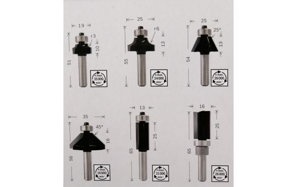 - BOSCH - Σετ Φρέζες για Ρούτερ για προφίλ 6mm - 6 Τεμαχίων.