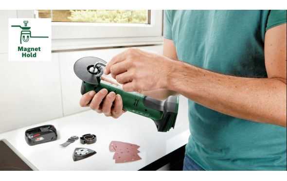 - Το ελαφρύ, φιλικό προς τον χρήστη UniversalMulti 18V-32 είναι το ισχυρό εργαλείο «όλα-σε-ένα» για πολλές ερασιτεχνικές εργασίες.