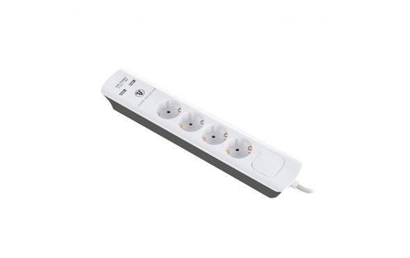 Πολύπριζο με προστασία 4 θέσεων & 2xUSB Auto-ID 1.5m.Προστασία από υπέρταση.Διακόπτης on/off φωτιζόμενος.Μηχανικό κλείδωμα πρίζας.4 x πρίζες σούκο.