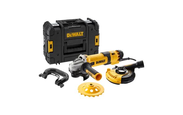 DEWALT - DWE4257KT Γωνιακός Τροχός Ρυθμιζόμενης Ταχύτητας με Εξάρτημα Εξαγωγής Σκόνης & Δίσκος Λείανσης Μπετού σε T-Stack 125mm 1500w