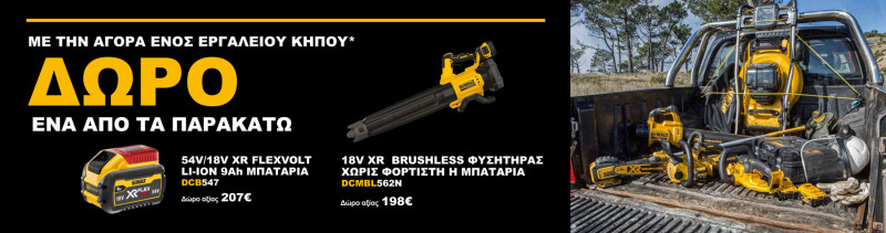 ME ΑΓΟΡΕΣ ΣΕ ΠΡΟΪΟΝΤΑ DEWALT ΑΝΩ ΤΩΝ 499€, ΠΑΙΡΝΕΙΣ ΕΝΑ ΣΑΚΙΔΙΟ ΕΡΓΑΛΕΙΩΝ DEWALT ΔΩΡΕΑΝ!
