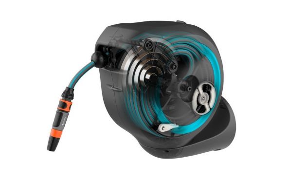 - Άνετο και ευέλικτο πότισμα μεσαίου μεγέθους κήπων με το συμπαγές Αυτόματο Καρούλι Λάστιχου RollUp M.