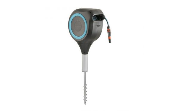 - Επιπλέον, αυτό το καρούλι λάστιχου σας σώζει από την κουραστική συστροφή, τη κύλιση και τα βρώμικα χέρια:Ένα σύντομο τράβηγμα στο άκρο του λάστιχου απελευθερώνει την κλειδαριά και ένα ενσωματωμένο χαλύβδινο ελατήριο φέρνει πίσω το λάστιχο του κήπου πλήρως αυτόματα και αξιόπιστα.