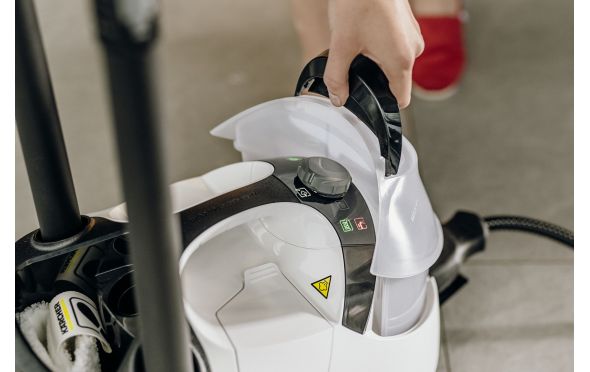 - Ο σχολαστικός καθαρισμός με τον ατμοκαθαριστή Kärcher απομακρύνει το 99,999% των ιών¹⁾ και το 99,99% όλων των κοινών οικιακών βακτηρίων²⁾ από τις τυπικές σκληρές επιφάνειες του νοικοκυριού. Και χάρη σε μια μεγάλη γκάμα διαθέσιμων εξαρτημάτων, μπορεί να καθαρίσει τέλεια λείες επιφάνειες, απορροφητήρες, γωνίες και κενά. Το ιδιαίτερα πρακτικό σίδερο πίεσης ατμού που επίσης περιλαμβάνεται επιταχύνει το σιδέρωμα κατά 50%. Η λειτουργία VapoHydro επιτρέπει επιπλέον την προσθήκη ζεστού νερού και την ευκολότερη απομάκρυνση και πλύση των επίμονων ρύπων.