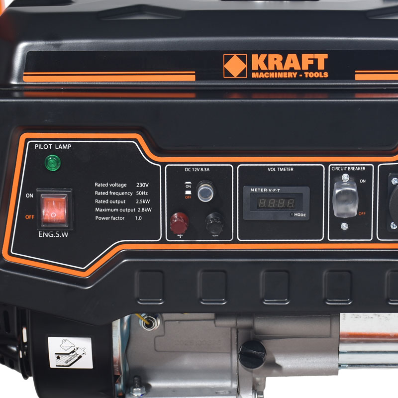 2500 Watt ωφέλιμη απόδοση.Σταθεροποιητής τάσης - AVR (AUTOMATIC VOLTAGE REGULATOR).Μεταλλική κατασκευή με αντικραδασμικές βάσεις.Με ηλεκτρονικό πάνελ ελέγχου με ένδειξη τάσης, συχνότητας και χρόνου λειτουργίας με μπουτόν επιλογής λειτουργίας.Γενικός ασφαλειοδιακόπτης .Έξοδος DC 12VOLT με θερμικό 8,3A.Αναλογική ένδειξη στάθμης καυσίμου.