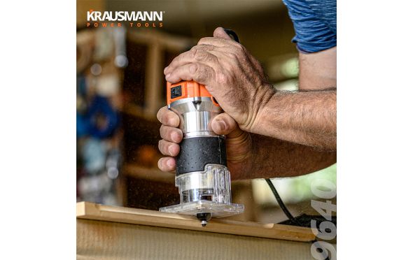 - Ρούτερ περιθωρίων compact βυθιζόμενο KRAUSMANN® 9640, με ισχύ 600W και ρυθμιζόμενη ταχύτητα.