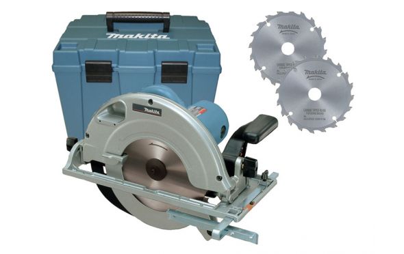 Δισκοπρίονο χειρός με πλάγιο βαθμιαίο οδηγό, κλειδί, 2 δίσκους Makforce και θήκη μεταφοράς.