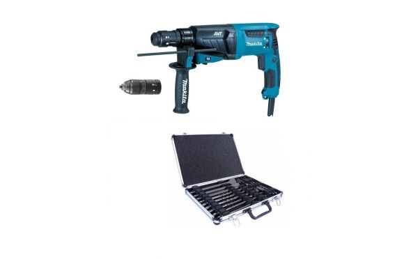 MAKITA - HR2631FT12 Πνευματικό Σκαπτικό SDS-PLUS AVT με Σετ Τρυπανιών 17 Τεμαχίων και Ταχυτσοκ