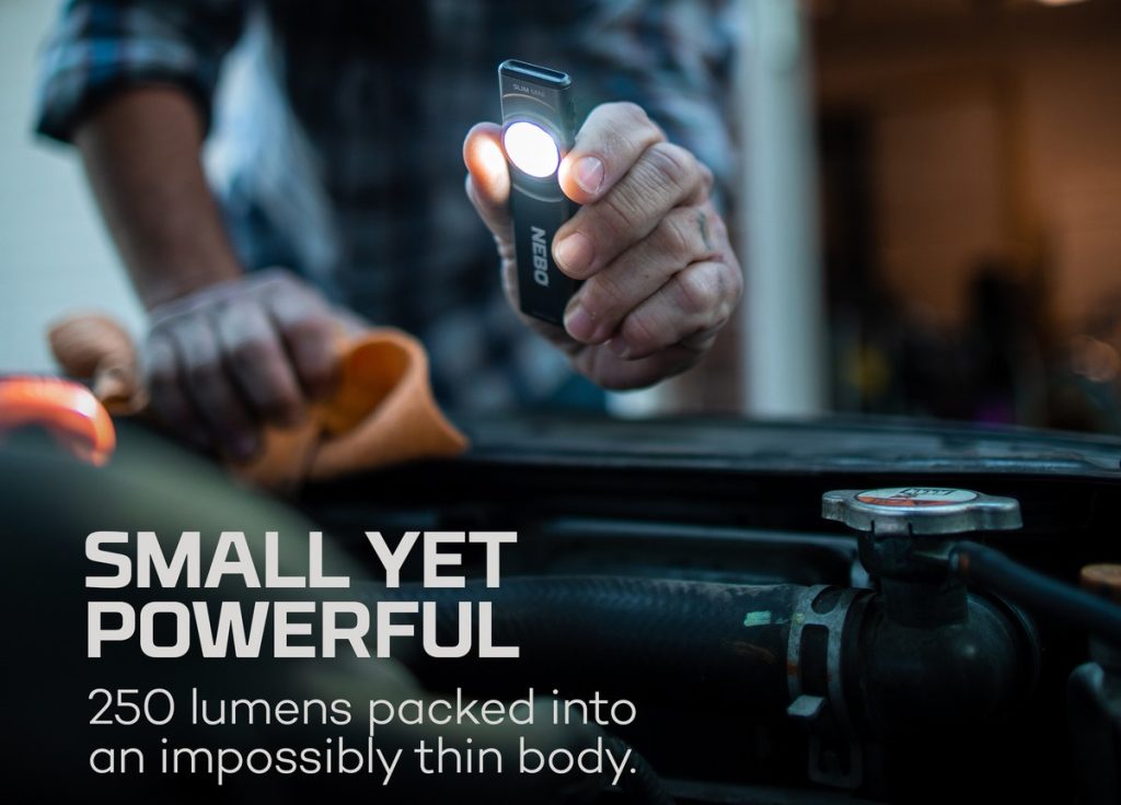 - Ο επαναφορτιζόμενος φακός Slim Mini αποδίδει ισχυρά 250 lumens σε υπέρ μικρό μέγεθος.