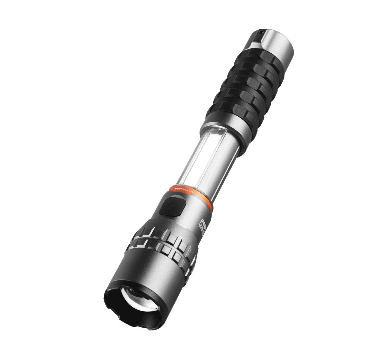 - Διαθέτει φακό 2.000 lumen με ζουμ 4x και C.O.B φως εργασίας 500 lumen. Και τα δύο φώτα διαθέτουν επιλογή ρύθμισης φωτεινότητας με προγραμματιζόμενη μνήμη.