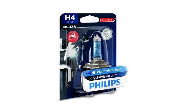 - Οι Philips CrystalVision Ultra Moto προσφέρουν φωτεινό λευκό φως, με εφέ τύπου Xenon μέχρι 4000Κ (ανάλογα τον τύπο λάμπας). Χάρη στην υψηλή τεχνολογία και στην αποτελεσματικότητα, διαφοροποιείτε τη μηχανή σας με καλύτερη ορατότητα και άνεση!