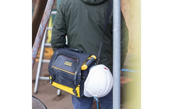 Η τσάντα είναι συμβατή με τους τροχήλατους εργαλειοφορείς της Stanley χάρη στο λάστιχο που διαθέτει στην πλάτη.