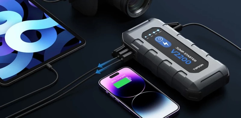 - Παρουσιάζουμε το TOPDON V2200, έναν εξαιρετικό φορητό εκκινητή μπαταρίας που έχει σχεδιαστεί έτσι ώστε να παρέχει εντυπωσιακό ρεύμα αιχμής 2200A για ταχεία φόρτιση μπαταριών μολύβδου οξέος 12V μέσα σε δευτερόλεπτα.