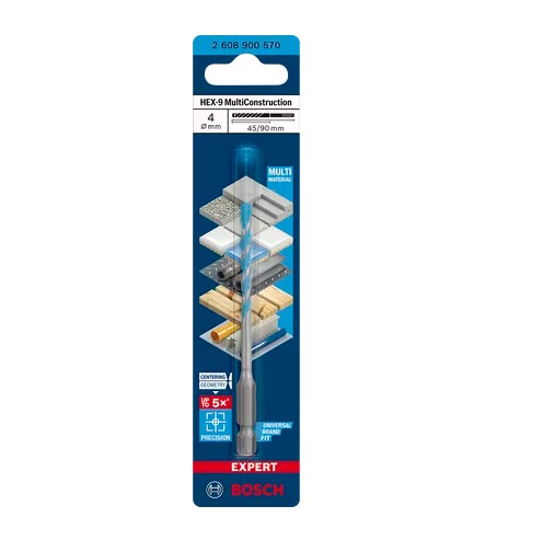 - Το τρυπάνι Bosch EXPERT HEX-9 MultiConstruction πρέπει να βρίσκεται πάντα στην εργαλειοθήκη σας: δεν θα κολλήσετε ποτέ ξανά ούτε θα σπαταλήσετε χρόνο αναζητώντας το κατάλληλο τρυπάνι.