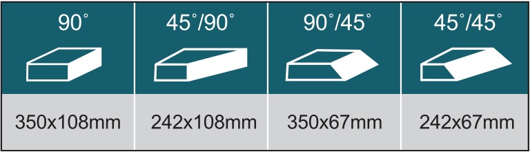 - Κοπή ακριβείας με θετικές στάσεις στις 22,5 ,45 ,47 ,δεξιά ή αριστερά και 0 (90 κοπές).