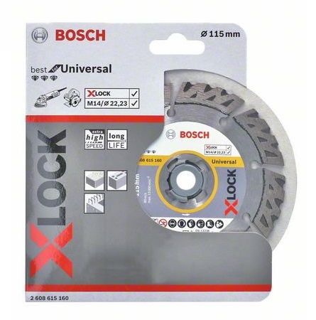- Ο διαμαντόδισκος κοπής X-LOCK Best for Universal προσφέρει εκπληκτική διάρκεια ζωής σε γενικά κατασκευαστικά υλικά όπως μπετόν, ενισχυμένο μπετόν, τούβλο, ψαμμίτη, ασβεστόλιθο και κεραμίδια.