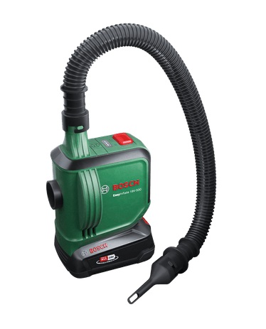- Η αντλία αέρα μπαταρίας EasyInflate 18V-500 της Bosch με μέγιστη ροή αέρα 530 λίτρα/λεπτό φέρνει ένα νέο επίπεδο ταχύτητας και άνεσης στο φούσκωμα και ξεφούσκωμα παιχνιδιών πισίνας, φουσκωτών σκαφών, στρωμάτων αέρα και άλλων αντικειμένων μεγάλου όγκου.
