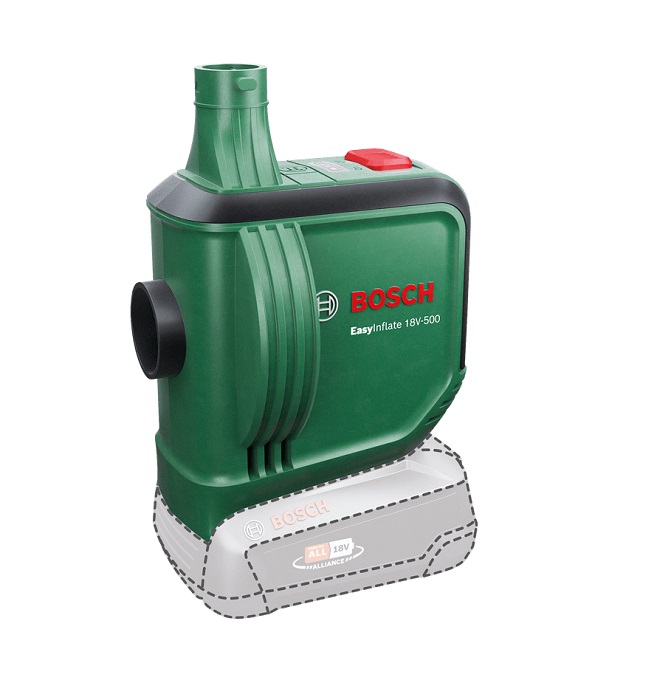 - Η αντλία αέρα μπαταρίας EasyInflate 18V-500 της Bosch με μέγιστη ροή αέρα 530 λίτρα/λεπτό φέρνει ένα νέο επίπεδο ταχύτητας και άνεσης στο φούσκωμα και ξεφούσκωμα παιχνιδιών πισίνας, φουσκωτών σκαφών, στρωμάτων αέρα και άλλων αντικειμένων μεγάλου όγκου.