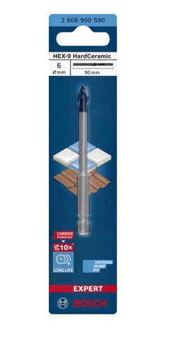 - Το τρυπάνι Bosch EXPERT HEX-9 HardCeramic είναι σχεδιασμένο για τη διάτρηση κεραμικών και μπορεί να ανοίγει τρύπες σε σκληρά πλακίδια, χωρίς λιπαντικό ή ψύξη