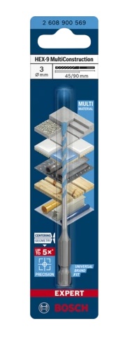 - Το τρυπάνι Bosch EXPERT HEX-9 MultiConstruction πρέπει να βρίσκεται πάντα στην εργαλειοθήκη σας: δεν θα κολλήσετε ποτέ ξανά ούτε θα σπαταλήσετε χρόνο αναζητώντας το κατάλληλο τρυπάνι.
