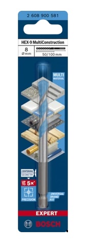 - Το τρυπάνι Bosch EXPERT HEX-9 MultiConstruction πρέπει να βρίσκεται πάντα στην εργαλειοθήκη σας: δεν θα κολλήσετε ποτέ ξανά ούτε θα σπαταλήσετε χρόνο αναζητώντας το κατάλληλο τρυπάνι.