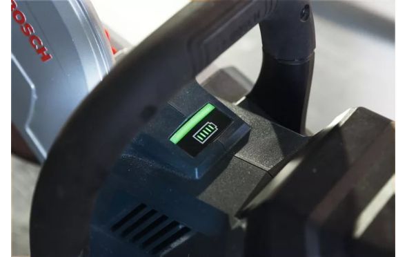 - Το πριόνι κοπής GCS 18V-230 διαθέτει επίσης ένα σύστημα αφαίρεσης μπαταρίας με υποβοήθηση ελατηρίου. που καθιστά εύκολη την αφαίρεση μεγαλύτερων μπαταριών 18 V, όταν οι μπαταρίες πρέπει να επαναφορτιστούν ή οι τροχοί πρέπει να αλλάξουν.