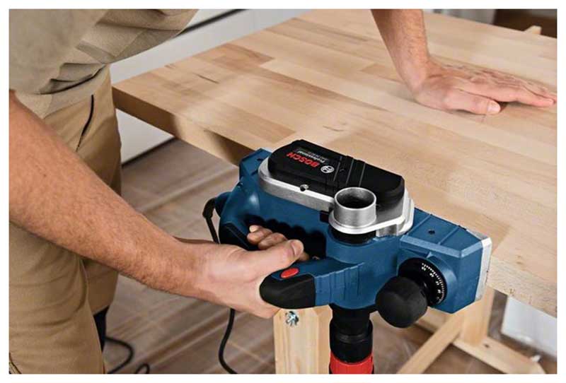 Άνετη εργασία χάρη στην έξοδο των ροκανιδιών και από τις δυο πλευρές και στη ρύθμιση του βάθους πλανίσματος έως 2,6 mm