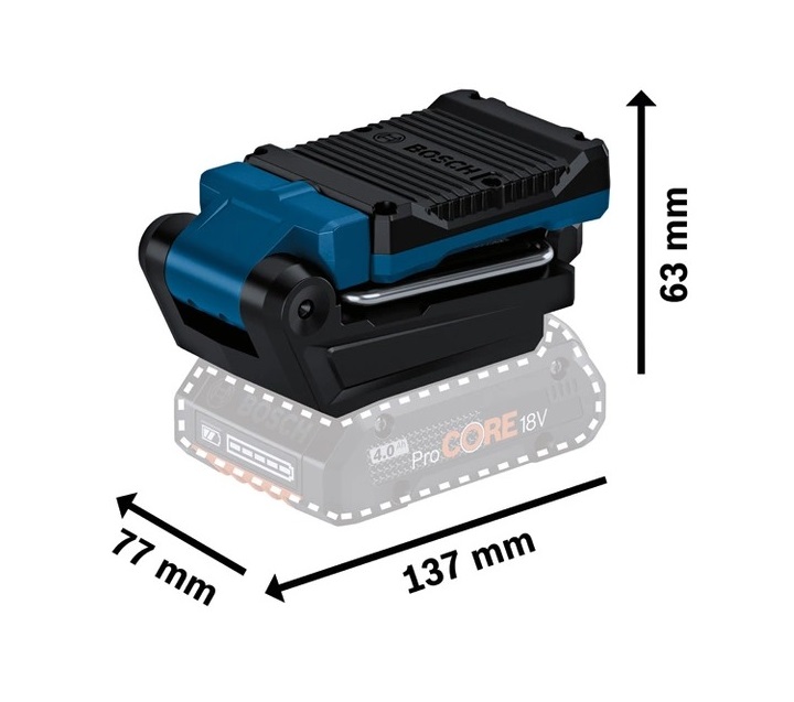 - Το φως εργασίας είναι συμβατό με όλες τις μπαταρίες και φορτιστές AMPShare Alliance 18 V συμπεριλαμβανομένων όλων των μπαταριών και φορτιστών του Bosch Professional 18V System.