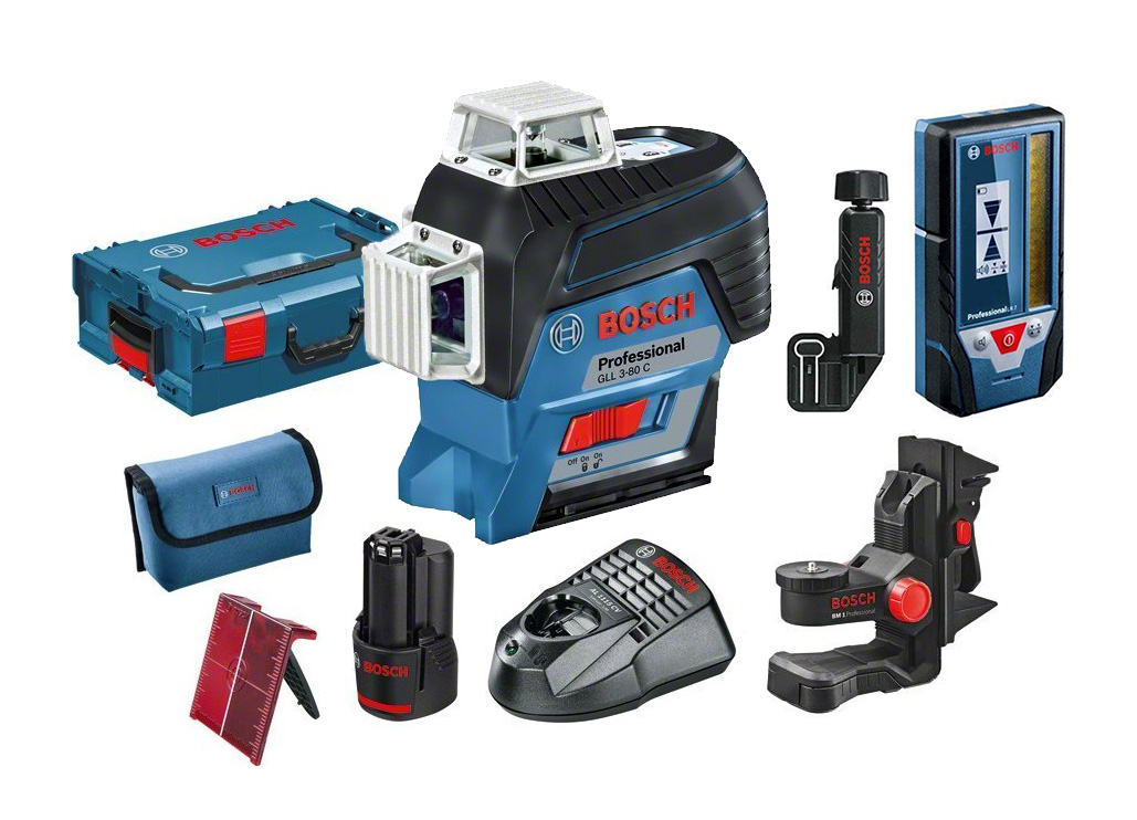 Bosch - GLL 3-80 C Γραμμικό Λέιζερ με Πίνακα Στόχου και Δέκτη LR7 σε L-Boxx 12V (1x2.0Ah)
