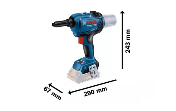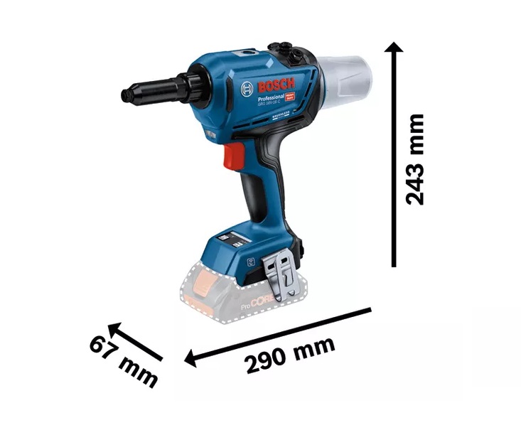- Το GRG 18V-16 C Professional εγκαθιστά έναν μεγάλο αριθμό τυφλών πριτσινιών (διάμετρος 3,0–6,4 mm), με μια σταθερή δύναμη έλξης 16000 N.