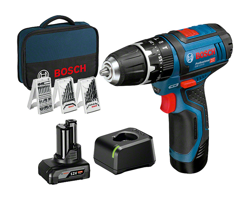 Bosch - GSB 12V-15 Κρουστικό Δραπανοκατσάβιδο Μπαταρίας (1x2.0Ah) και (1x4.0Ah) με Εξαρτήματα