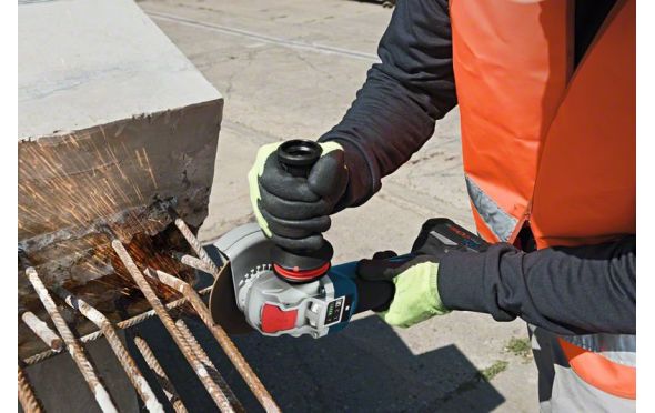 - Το εργαλείο προορίζεται για κοπή και λείανση μετάλλου, πέτρας και μπετού. Είναι συμβατό με τα προσαρτήματα σκόνης GDE 125 EA-T Professional και GDE 115 / 125 FC-T Professional, καθώς και με όλες τις μπαταρίες και φορτιστές Bosch Professional 18 V (Flexible Power System).