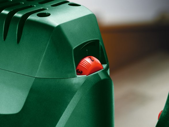 - Προεπιλογή του αριθμού στροφών ανάλογα με το υλικό μέσω του ηλεκτρονικού συστήματος Bosch με δίσκο ρύθμισης και διακόπτη επιτάχυνσης