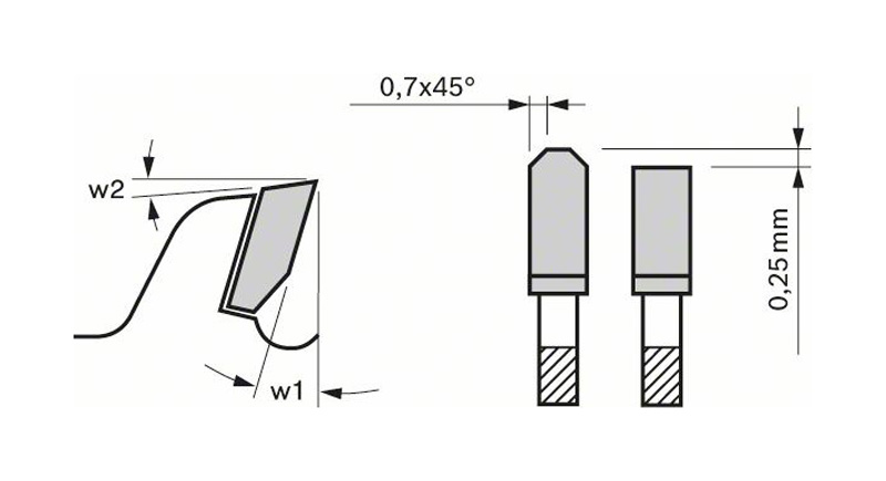 | Γωνία αφαίρεσης υλικού ° w1 5.0 |