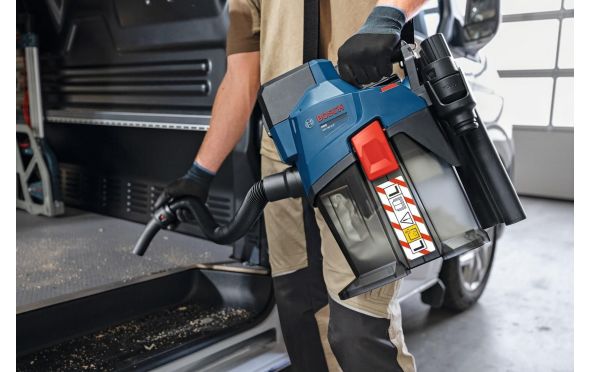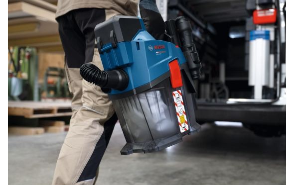 Ο ασύρματος απορροφητήρας σκόνης PRO GAS18V-6LS εγγυάται προστασία από σκόνη κατηγορίας L. Η εργονομικά σχεδιασμένη χειρολαβή, ο ιμάντας μεταφοράς και ο συμπαγής, ελαφρύς σχεδιασμός προσφέρουν εύκολη μεταφορά του.Τα πολλά αξεσουάρ τον καθιστούν ιδανικό για ποικιλία στεγνών εφαρμογών, ενώ αποθηκεύονται απευθείας επάνω στη συσκευή, ώστε να έχετε πάντα το κατάλληλο εξάρτημα άμεσα διαθέσιμο. Ο απορροφητήρας σκόνης διαθέτει λειτουργία eco για μεγαλύτερη διάρκεια λειτουργίας ανά φόρτιση μπαταρίας, λειτουργία boost για μέγιστη ισχύ αναρρόφησης, καθώς και λειτουργία φυσητήρα (ο σωλήνας φυσητήρα διατίθεται ως αξεσουάρ και δεν περιλαμβάνεται στη βασική συσκευασία).Είναι συμβατό με το σύστημα Bosch Click & Clean. Επίσης, είναι συμβατό με το Bosch Professional 18V System...