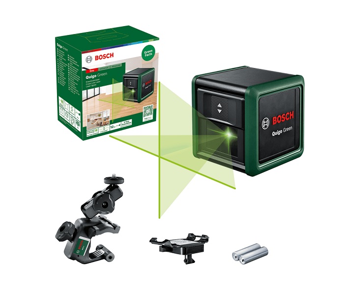 - Πηγαίνετε στο πράσινο με τη νέα γενιά λέιζερ διασταυρούμενων ακτίνων Quigo Green της Bosch, που προσφέρει μεγάλη ορατότητα και εύκολο χειρισμό στις ερασιτεχνικές εργασίες.