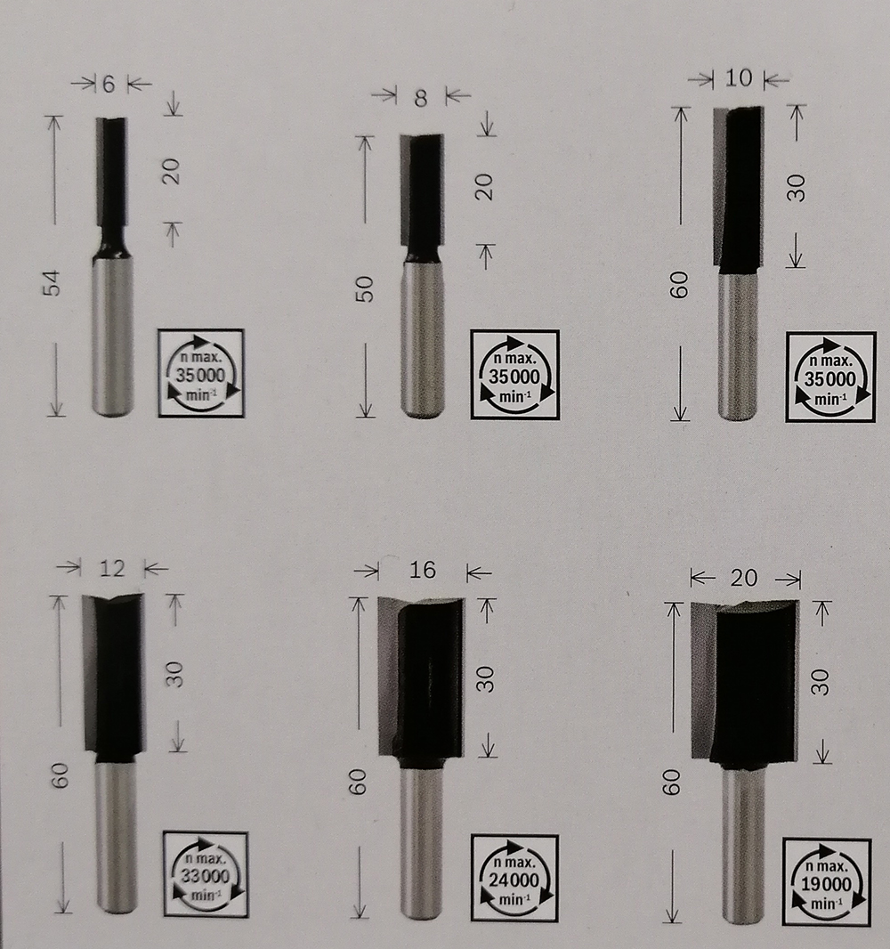 - BOSCH - Σετ Φρέζες για Ρούτερ για ευθεία κοπή 6mm - 6 Τεμαχίων.