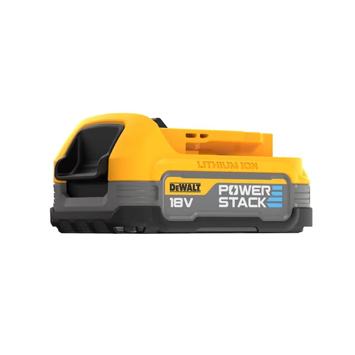 - Η κομπακτ μπαταρία 18V DEWALT POWERSTACK™ χρησιμοποιεί επαναστατική τεχνολογία στοιβαζόμενων κυψελών μπαταρίας, για να κάνει αυτήν την μπαταρία την πιο ισχυρή (έναντι της μπαταρίας DCB183, όχι σε χρήση) και πιο ελαφριά (έναντι των μπαταριών DEWALT 18V XR 2.0Ah ή χαμηλότερης ισχύος) μπαταρία που διαθέτουμε.