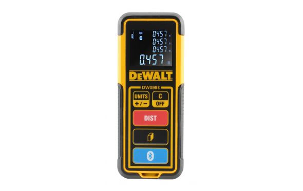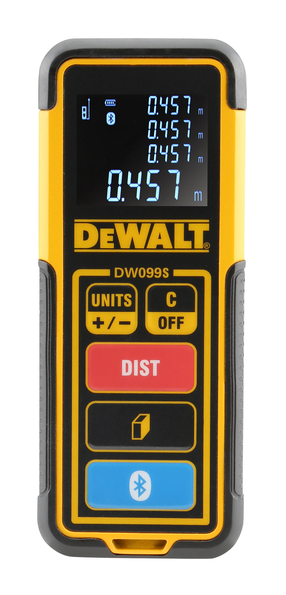 - Το Dewalt DW099S Bluetooth Measure έχει εμβέλεια 30 μέτρων και λειτουργεί σε συνδυασμό με την εφαρμογή Dewalt Measure στο Smartphone σας.