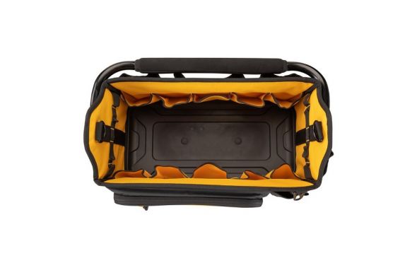 Η ανοιχτή τσάντα, με εσωτερική κίτρινη επένδυση Dewalt έχει σχεδιαστεί για να εξασφαλίζει γρήγορη και εύκολη πρόσβαση στα εργαλεία σας χωρίς εμπόδια.