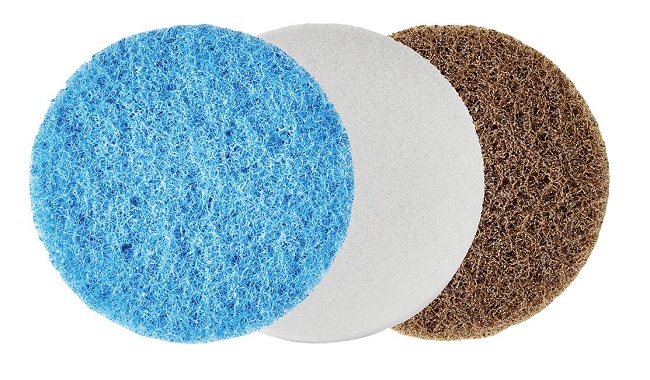 Διαφορετικά επίπεδα σκληρότητας για την απομάκρυνση λεκέδων, υπολειμμάτων και σκληρών βρωμιών από σκληρές επιφάνειες χωρίς γραντζουνιές (μπλε πέλμα), χωρίς τη χρήση σκληρού καθαριστικού (λευκό πέλμα), γρήγορα (καφέ πέλμα).