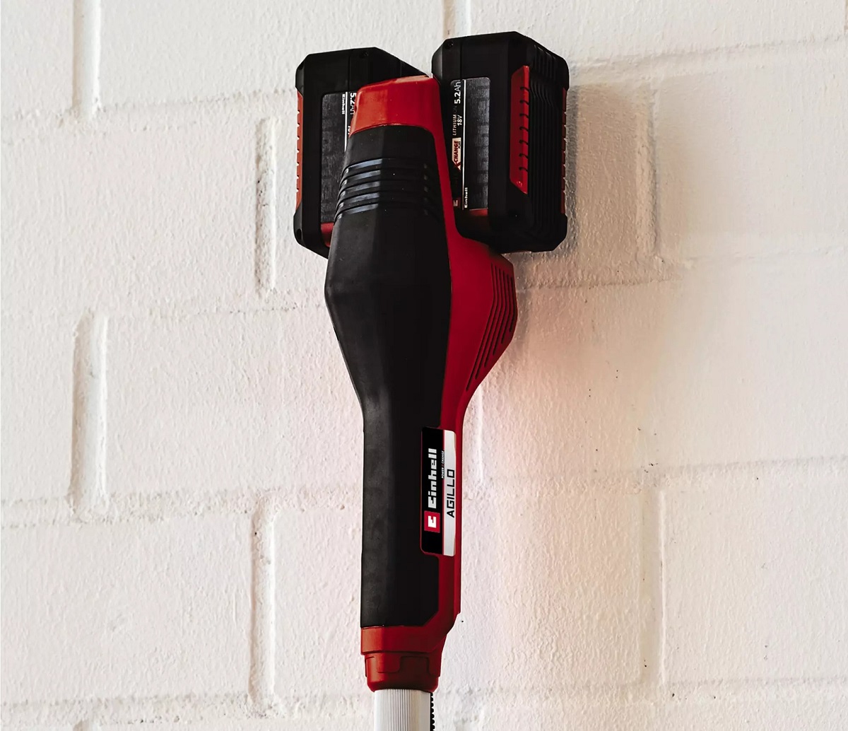 Κινητήρας χωρίς ψήκτρες.Διπλή λαβή τύπου ποδηλάτου.Διαιρούμενος άξονας.Ηλεκτρονική ρύθμιση ταχύτητας.Περιλαμβάνει στήριγμα τοίχου.Σύστημα κλειδώματος άξονα.Συνιστάται μπαταρία ≥2,5 Ah.Με ιμάντα δίσκο και κεφαλή μεσηνέζας.