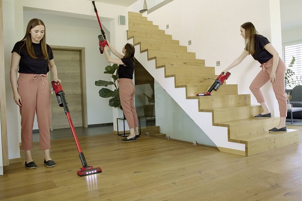 Σχεδιασμός 2 σε 1 - Ευέλικτος συναδυασμός με τα πλεονεκτήματα όρθιας ηλεκτρικής σκούπας και μιας ηλεκτρικής σκούπας χειρός για εύκολη εργασία χωρίς κόπωση σε όλο το σπίτι.
