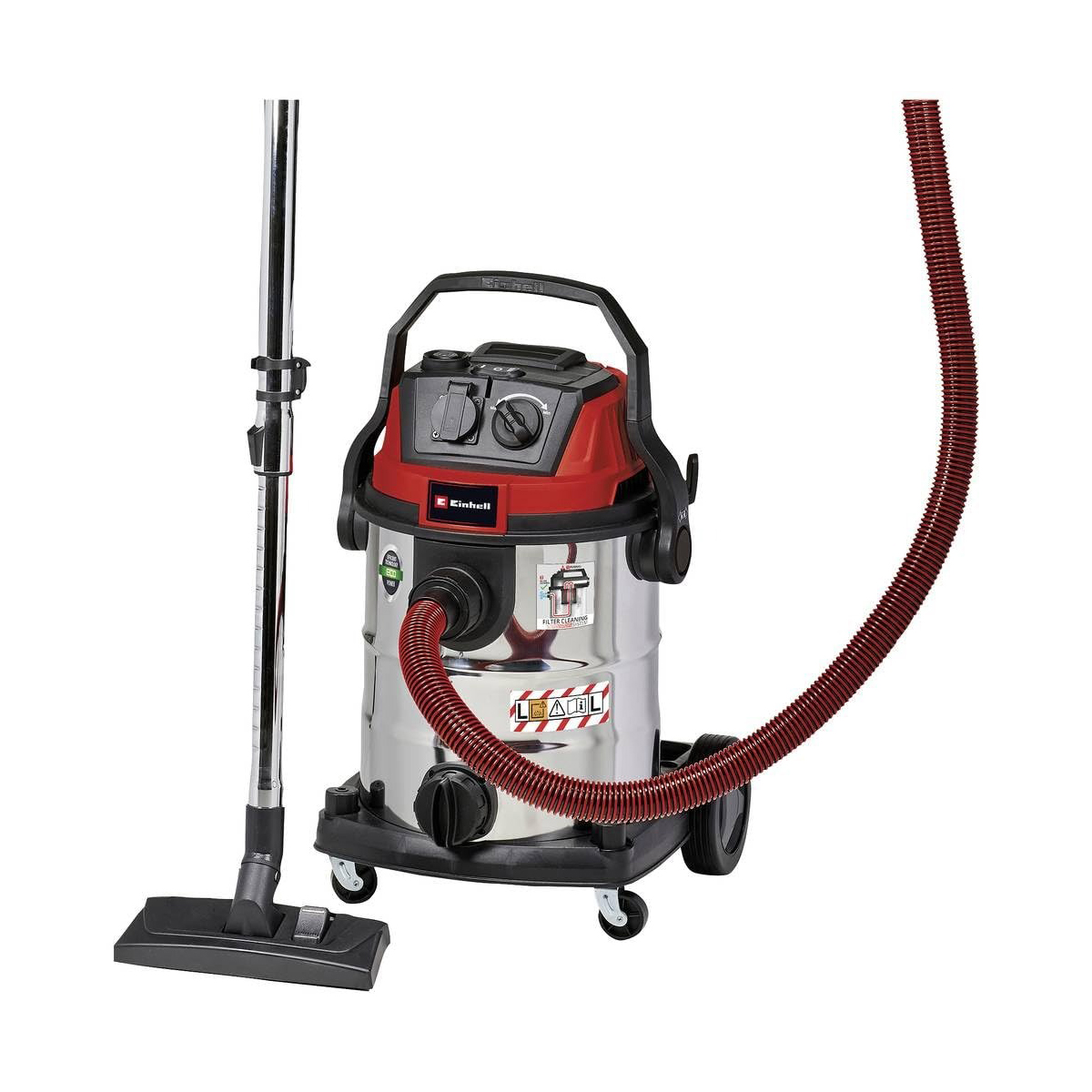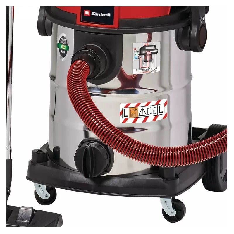 Για ρύπους (OEL >1 mg/m³) & κλάση σκόνης L με βάση τα πρότυπα ΕΕ.Φιλτράρισμα βλαβερών ρύπων όπως σοβάς.Με σύστημα καθαρισμού φίλτρου για την αποκατάσταση της ισχύος.Ρυθμιζόμενη ισχύς αναρρόφησης με έλεγχο ταχύτητας.Στιβαρός κάδος 25l από ανοξείδωτο ατσάλι.Λειτουργία φυσήματος για τον καθαρισμό δυσπρόσιτων σημείων. Μεγάλες ρόδες για μεγαλύτερη ευελιξία.Πρακτική βάση αξεσουάρ για εύκολη αποθήκευση.Βίδα για την αποστράγγιση του νερού.Τηλεσκοπικός σωλήνας από ανοξείδωτο ατσάλι (Ø 36 mm) με ρυθμιστή.Πλαστικός σωλήνας αναρρόφησης 3 μέτρων βαρέως τύπου (Ø 36 mm).