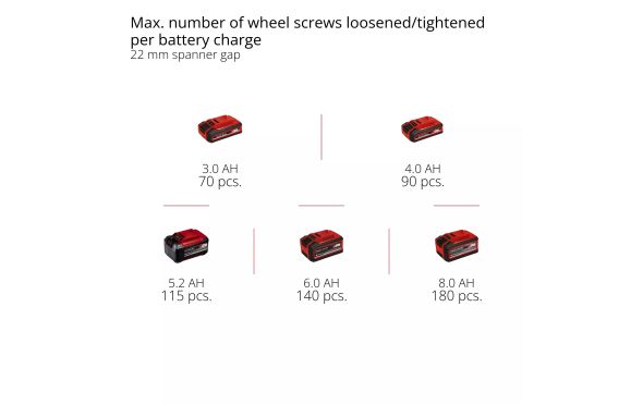 - Υψηλή ροπή για εύκολο ξεσφίξιμο των παξιμαδιών των τροχών.